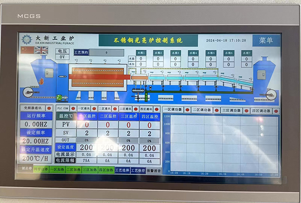 采用先進的PLC控制系統,具有編程靈活、高精度控制、可靠性高等優點。通過編程,可以實現對光亮爐運行狀態的實時監控和調節,確保工藝參數的穩定性和一致性。 PLC電腦編程鋼帶式不銹鋼工具產品光亮爐廣泛應用于不銹鋼加工行業,如不銹鋼帶材生產、不銹鋼工具制造等領域。通過光亮退火處理,可以提高不銹鋼產品的表面光亮度、耐腐蝕性和力學性能,滿足用戶對高質量不銹鋼產品的需求。